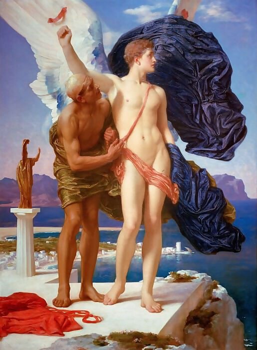 Frederic Leighton's "Daedalus and Icarus" is a captivating canvas print that captures the poignant moment from Greek mythology where Icarus soars too close to the sun, defying his father's warnings. The artwork showcases Leighton's mastery in depicting both the beauty and tragedy of the human condition. The dynamic composition and expressive figures bring the narrative to life, making this piece a powerful and thought-provoking addition to any art collection. Elevate your space with this timeless masterpiece, available as a high-quality photo print or canvas print.